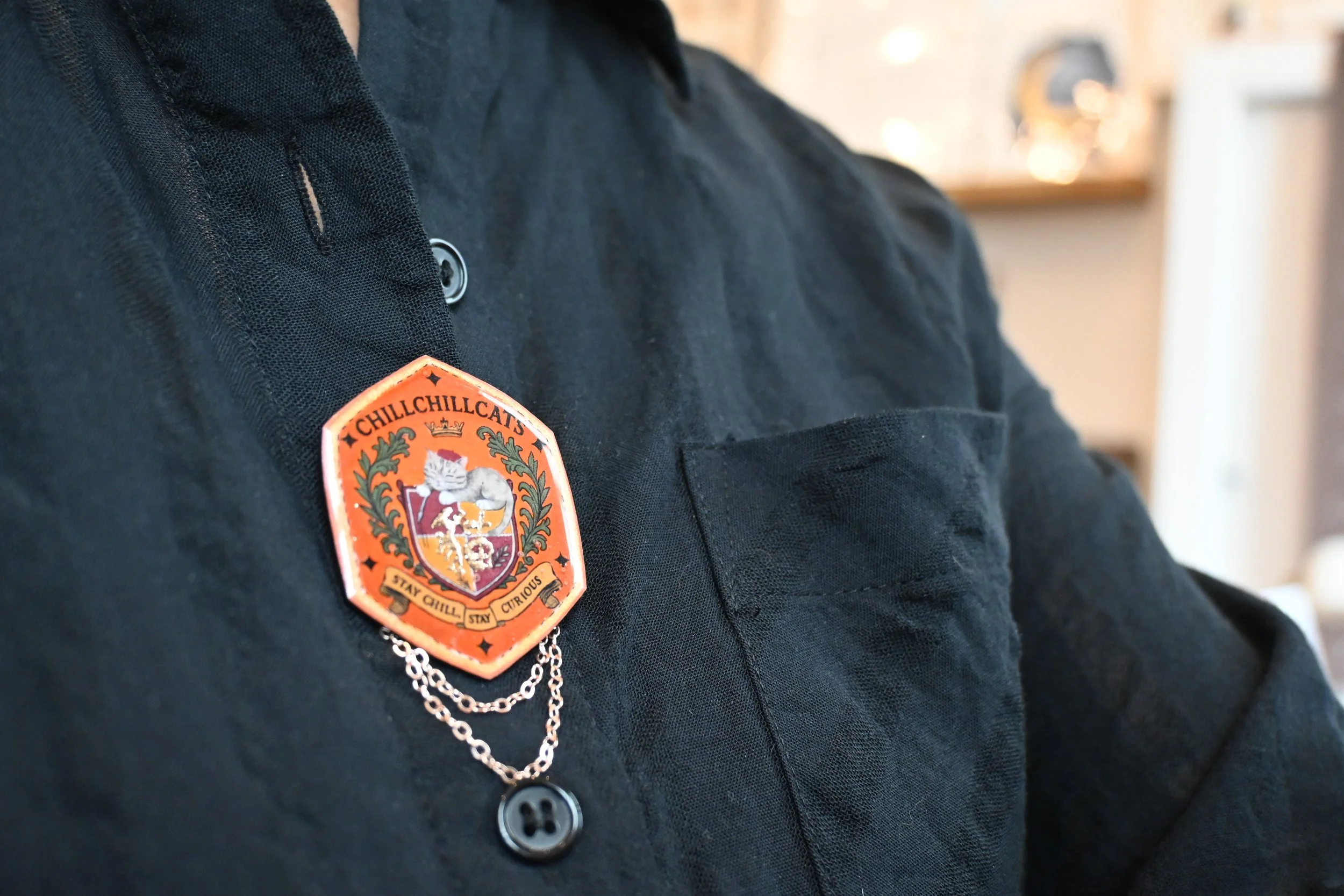 ChillChillCats Academy is our enchanted new line, featuring handmade cat brooches and other whimsical creations inspired by secret societies, ancient spells, and feline professors who nap between lectures.