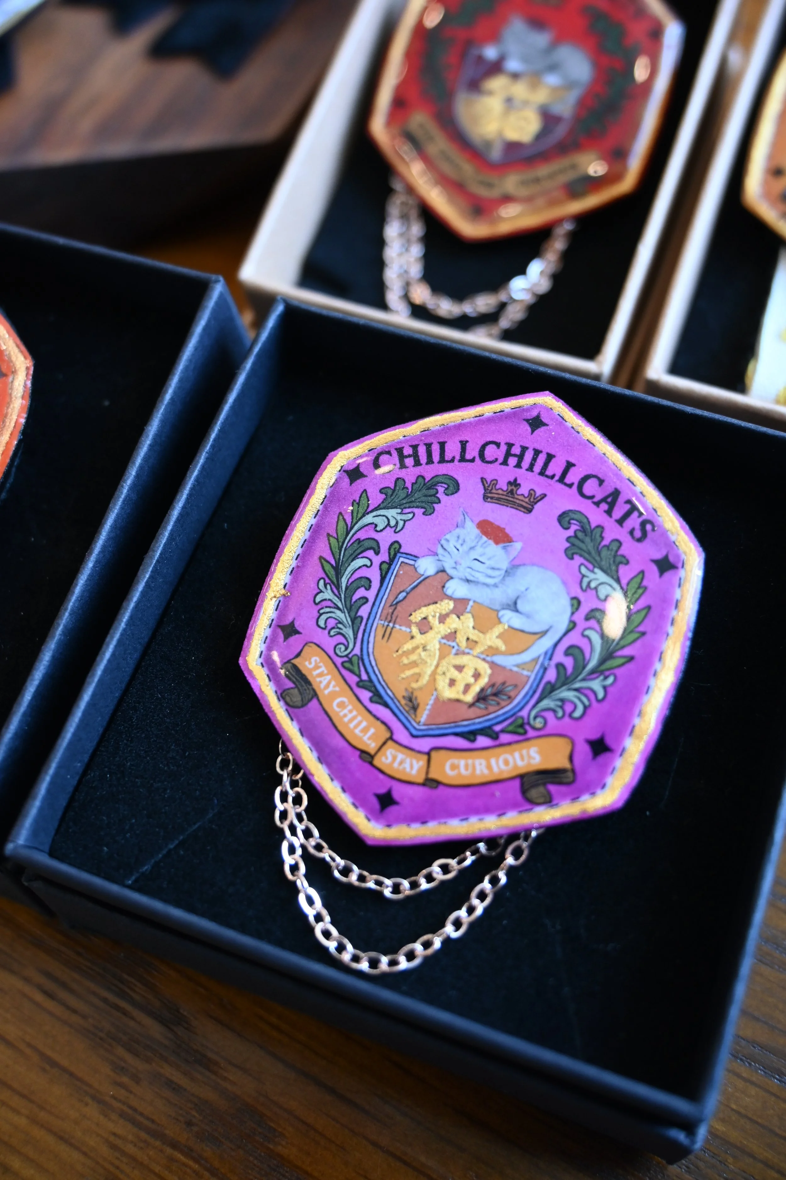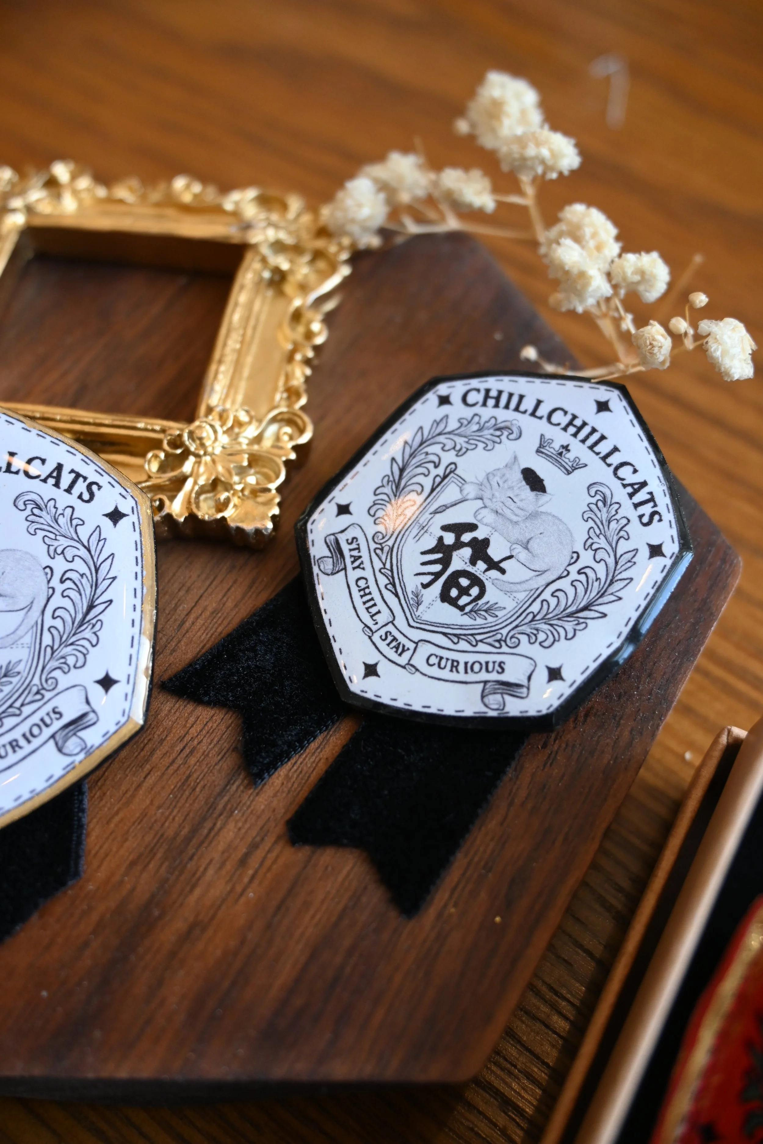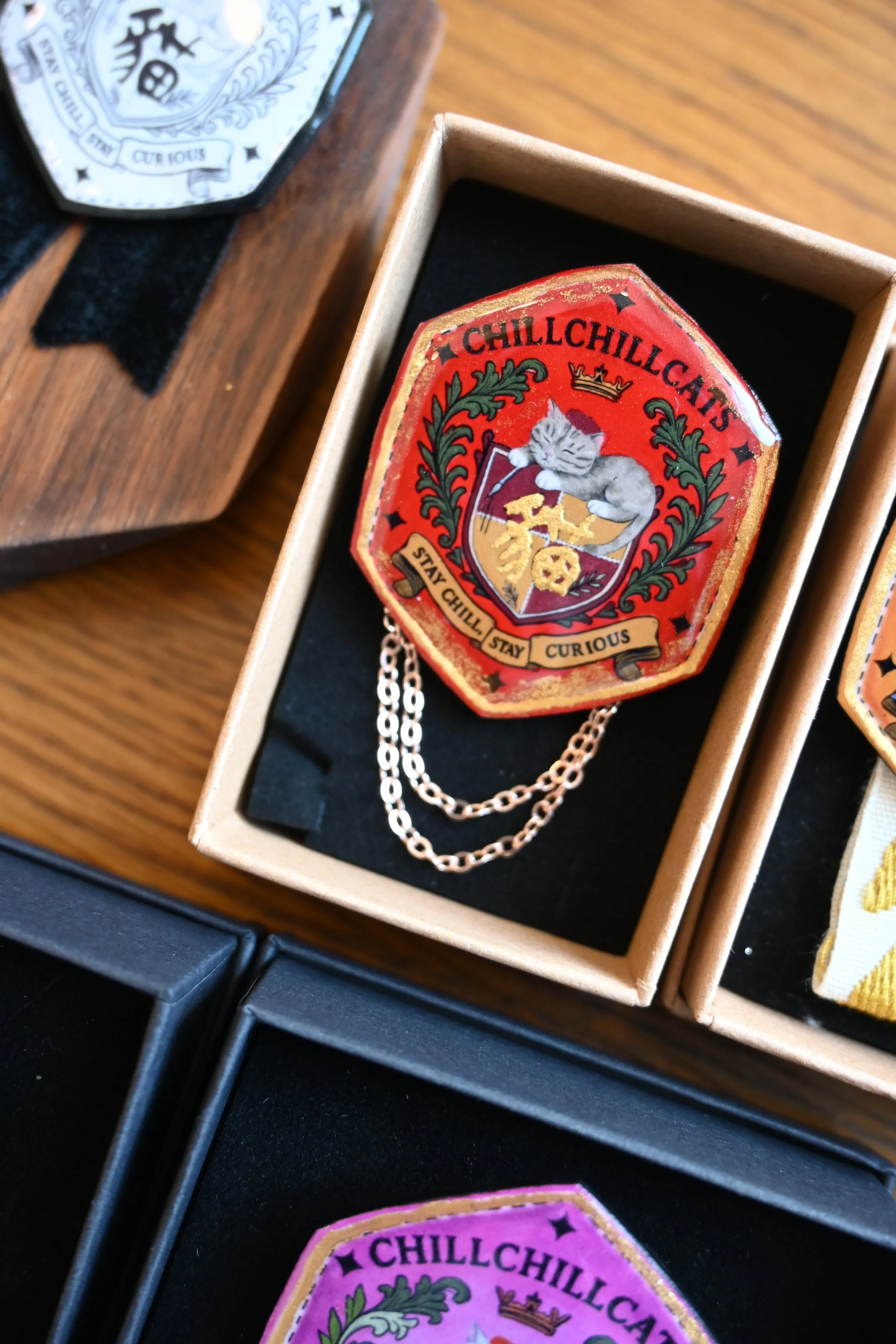 每一件作品都精心設計與製作,帶你進入一個結合幻想與細節的貓咪世界——既神秘又淘氣,全是屬於 ChillChillCats 的故事。從魔法書徽章到奇幻飾品,這所學院歡迎每一位相信「喵力」的人。