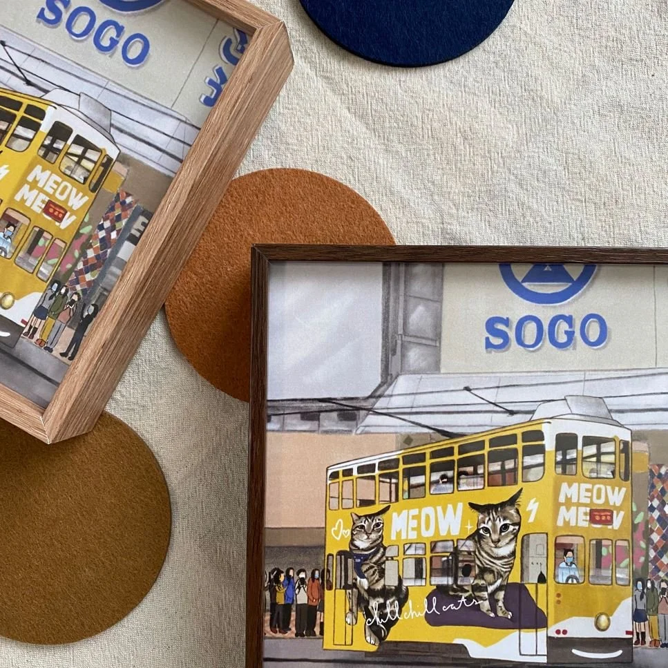 HK Tramway - we call the Hong Kong tramway “Ding Ding”." It is one of the oldest means of public transport in the metropolis and was put into service in 1904 during the British colonial period. While the music industry is on the rise in Hong Kong, people support their idols in different ways. One of the “WOW” cases is a promotional campaign by fans on Ding Ding, wishing a singer a happy birthday. The singer was replaced by the cat in the drawing.