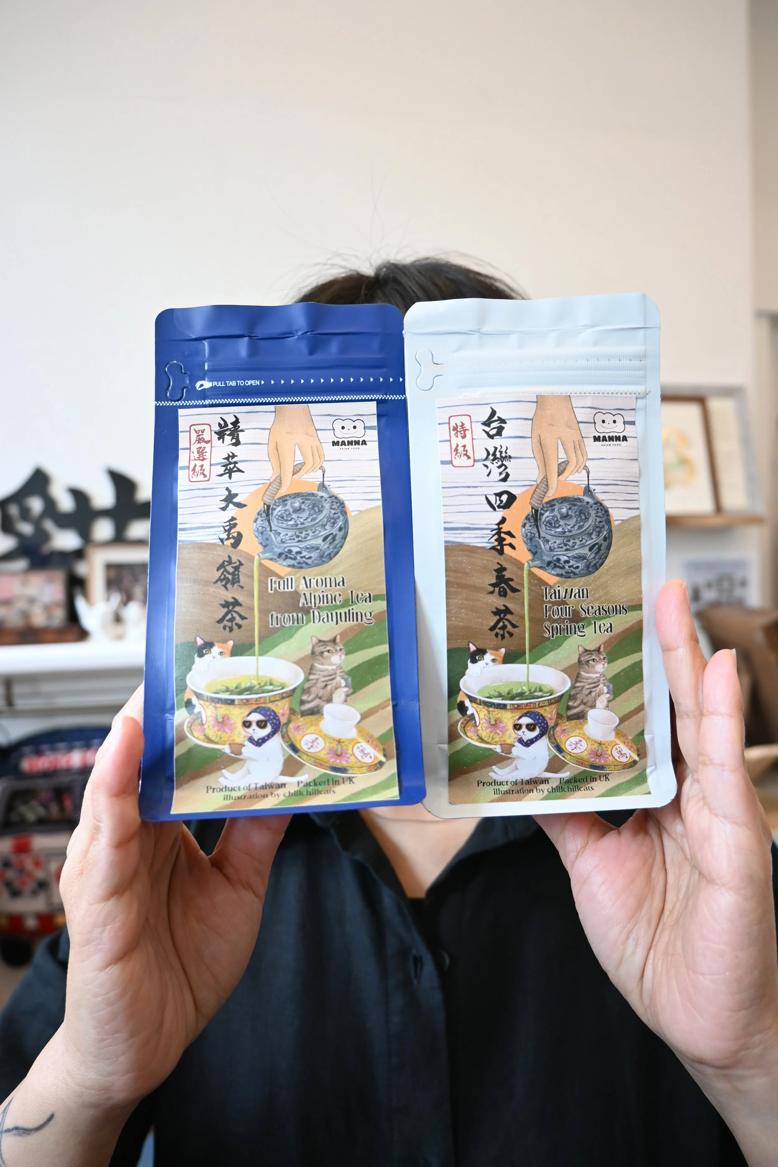 I’m delighted to have collaborated with MANNA in May 2025 to design cat-themed packaging for their Taiwanese high mountain tea. The design blends ChillChillCats’ illustration style with the spirit of tea culture, bringing a sense of comfort and little moments of joy to everyday life.