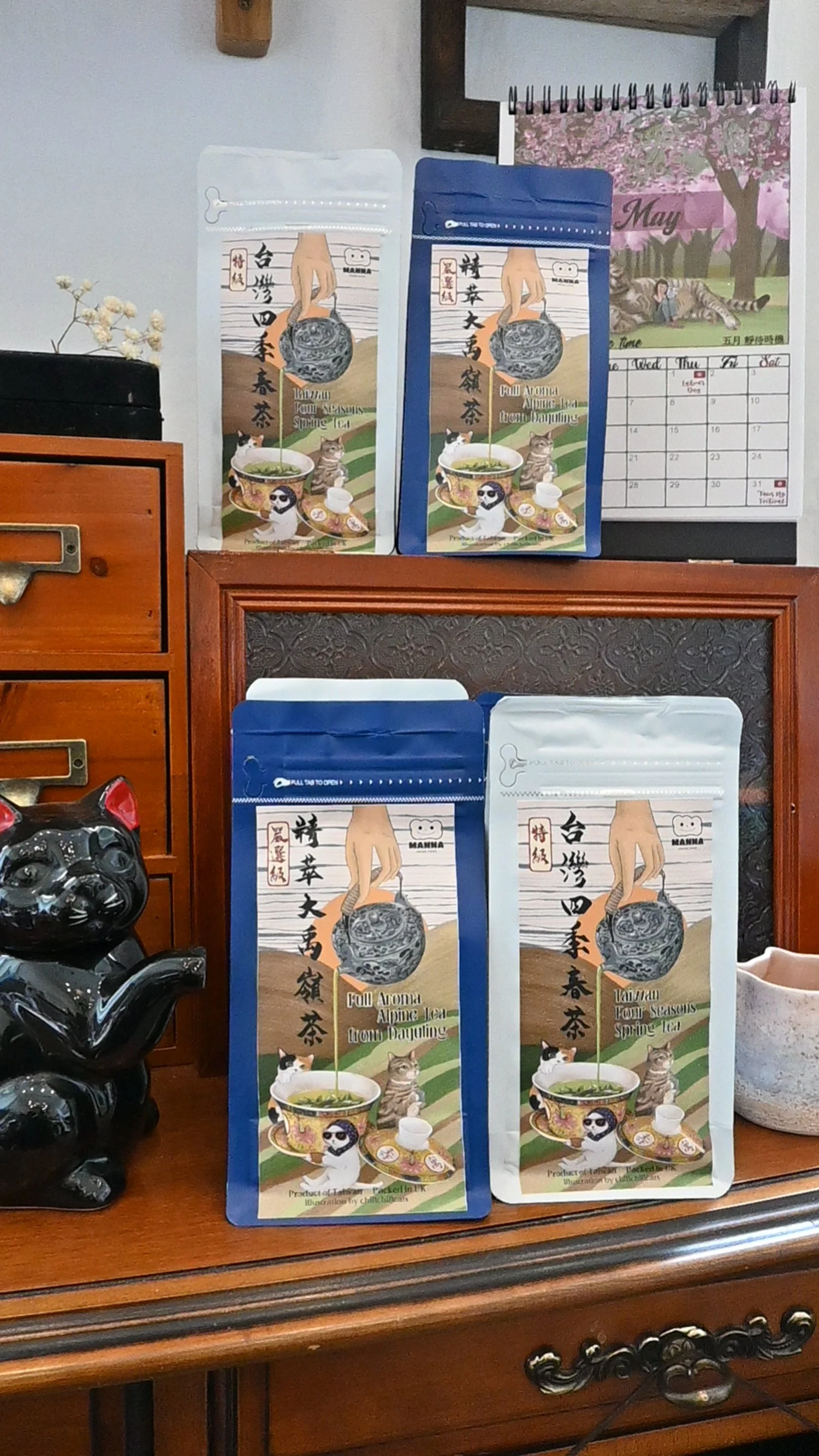 很開心在2025年5月與 MANNA 合作,為台灣高山茶葉設計了以貓為主角的茶包封面。設計中結合了 ChillChillCats 的插畫風格與茶文化的意境,希望這份作品能為大家帶來療癒與日常的小確幸。